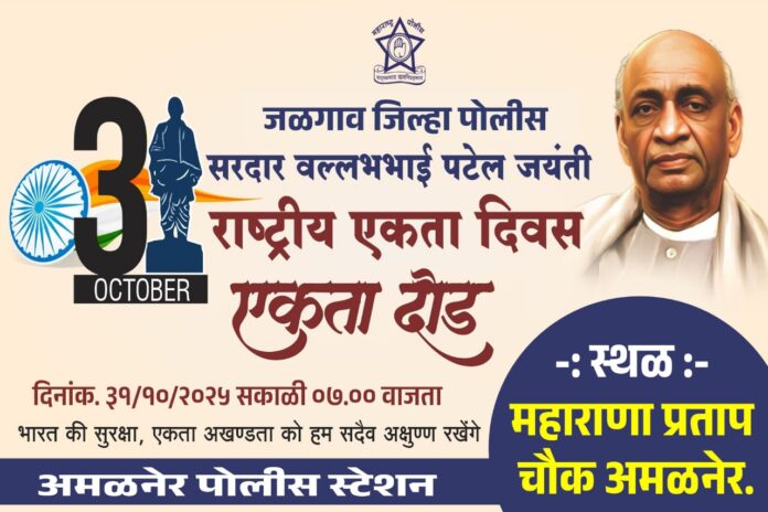 कार्यक्रम दि. ३१ ऑक्टोबर रोजी सकाळी ७.०० वाजता अमळनेर शहरातील महाराणा प्रताप चौक येथून सुरू होणार आहे.