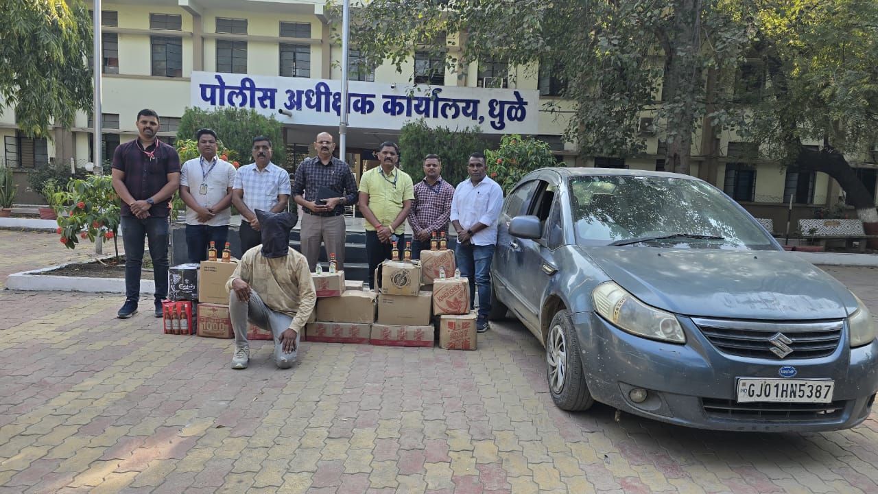महानगरपालिका निवडणुकीच्या पार्श्वभूमीवर शहरात अवैध धंद्यांविरोधात पोलिसांनी ‘झिरो टॉलरन्स’ धोरण अवलंबले आहे. रविवारी स्थानिक गुन्हे शाखेच्या (एलसीबी) पथकाने वडेल रोडवर फिल्मी स्टाईलने घेराबंदी करून गुजरात पासिंगची एक मारुती सुझुकी कार पकडली. झडतीदरम्यान या वाहनात मोठ्या प्रमाणात विदेशी आणि देशी दारूचा साठा आढळून आला. पोलिसांनी घटनास्थळावरून ८.२७ लाख रुपयांचा मुद्देमाल जप्त केला असून आरोपीला अटक केली आहे. एलसीबीचे निरीक्षक श्रीराम पवार यांना गुप्त बातमीदारामार्फत माहिती मिळाली होती की, वडेल गावाकडून एका कारमधून दारूची मोठी खेप शहरात विक्रीसाठी आणली जात आहे. माहिती मिळताच पथकाने विद्याधन कॉलेजसमोर नाकाबंदी केली. यादरम्यान संशयास्पद कार (GJ/01-HN-5387) येताना दिसली. चालकाने पळून जाण्याचा प्रयत्न केला, मात्र पोलिसांनी त्याला चारही बाजूंनी घेरले. कार चालक स्वप्नील दिनेश मोरे (३२, रा. महादेवपुरा, दोंडाईचा) याला मालाबाबत विचारले असता त्याने उडवाउडवीची उत्तरे दिली. कसून झडती घेतली असता कारमध्ये विदेशी आणि देशी दारूचे डझनभर बॉक्स सापडले. यामध्ये: